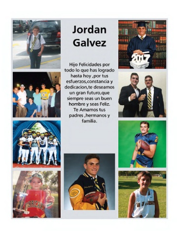 Jordan Galvez H ij o Fel icirdad es po r todo lio que has log rado hasta hoy .por tus esfuerzos,co nsta ncia y dedicacioflf'il, te desea mos un gran futuro.que siempre seas un buen hombre y S·eas Feliz. Te AmamrOS tus padres ,hermanos y familia.